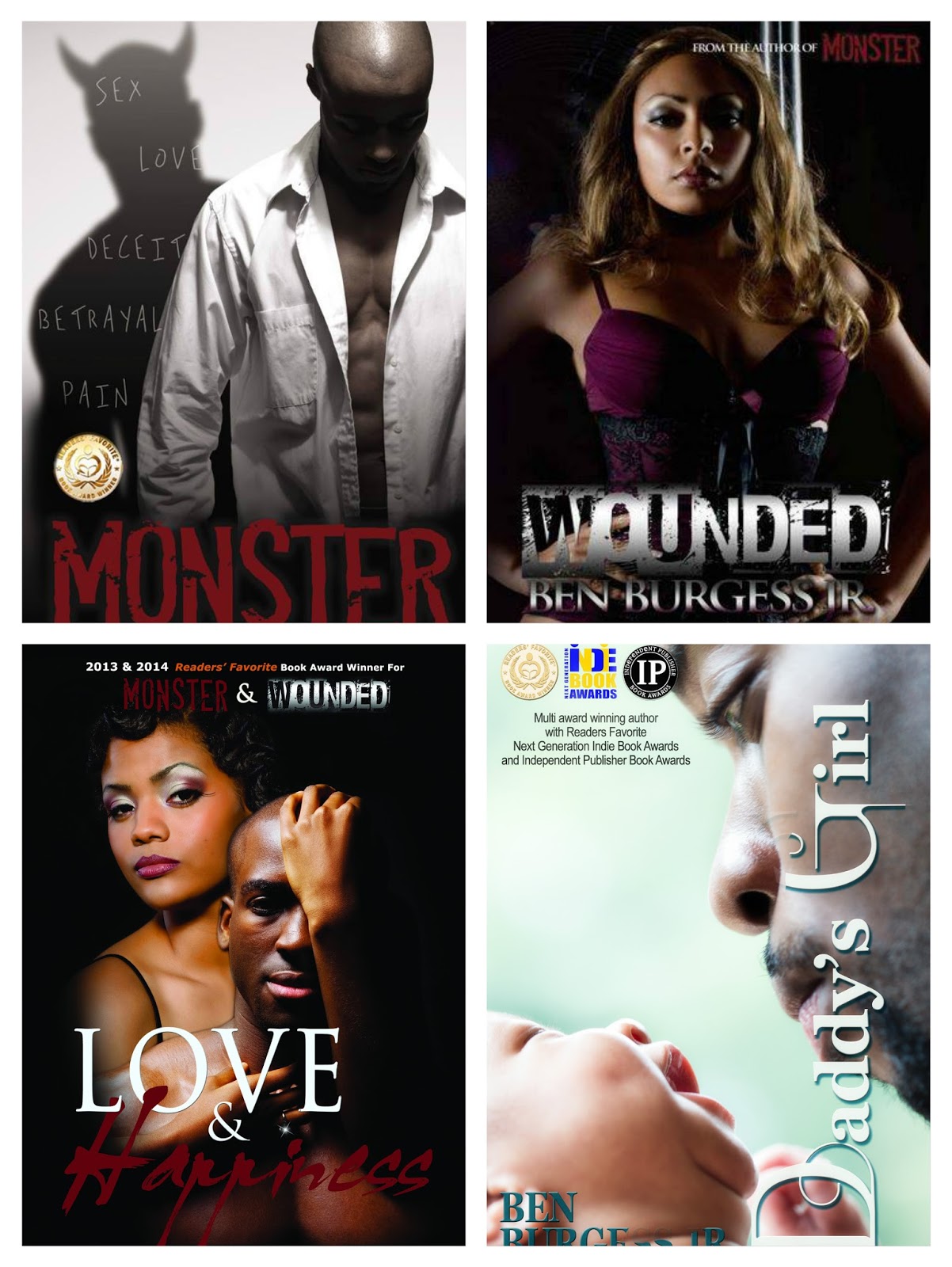 Ben Burgess Jr is the author of the award-winning novels “Monster”, “Wounded”, “Love and Happiness”, and the new novel “ Daddy’s Girl.” He is an active performer of spoken word poetry. Ben Burgess Jr uses his love of writing to inspire and influence youths to strive for what they believe in, and to never give up on their dreams. His novels “Monster” and “Wounded” are currently used in schools on the lower east side of Manhattan. Ben Burgess has a BA degree in Business Management and an MA degree in Educational Leadership. He is the proud father of his daughter Jaelynn and is active in trying to improve urban neighborhoods and communities.