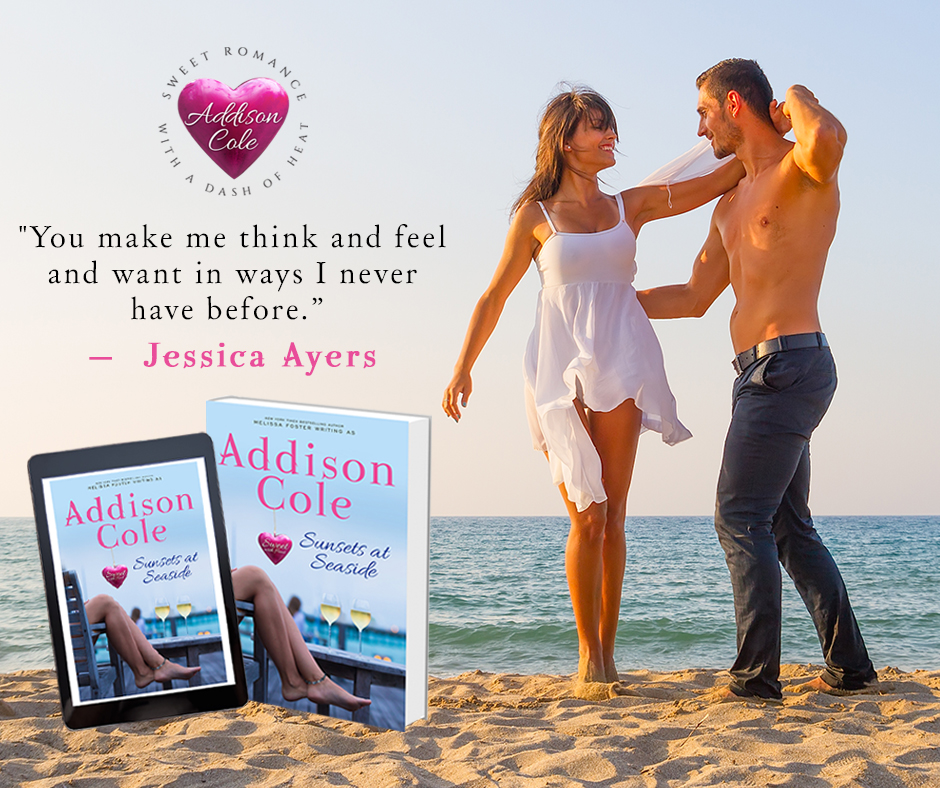 Sunsets at Seaside by Addison Cole is the sweet edition of New York Times bestselling author Melissa Foster’s steamy romance novel Seaside Sunsets. The stories and characters remain the same, and convey all of the passion you expect between two people in love, without any explicit scenes or harsh language.