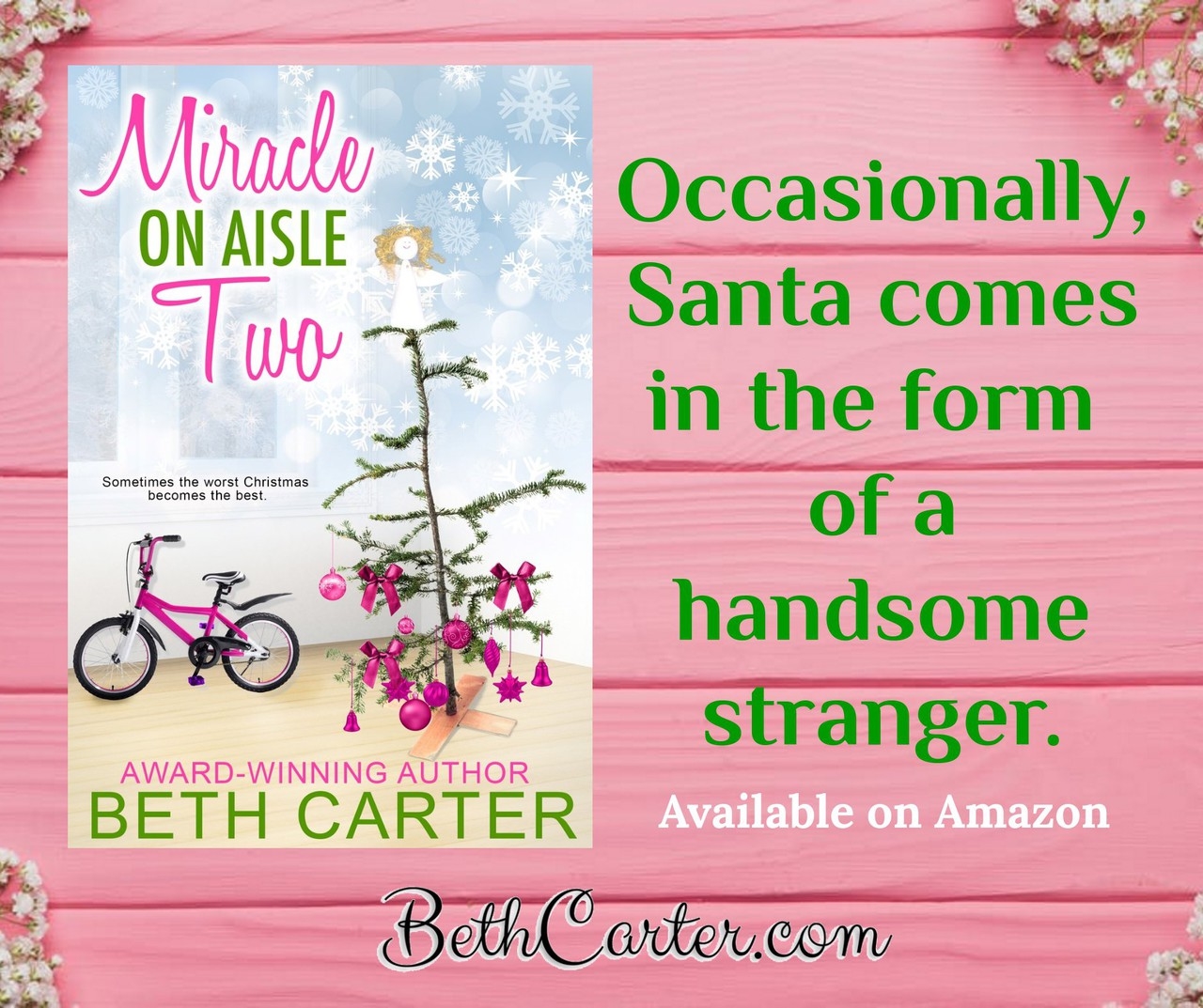 Her debut, THURSDAYS AT COCONUTS, received two coveted awards. The author received Favorite Contemporary runner-up in 2017 for her contemporary romance SLEEPING WITH ELVIS. Carter has a Christmas novelette, SANTA BABY in an eight-author collection, SIZZLE IN THE SNOW. Her first novella is MIRACLE ON AISLE TWO.