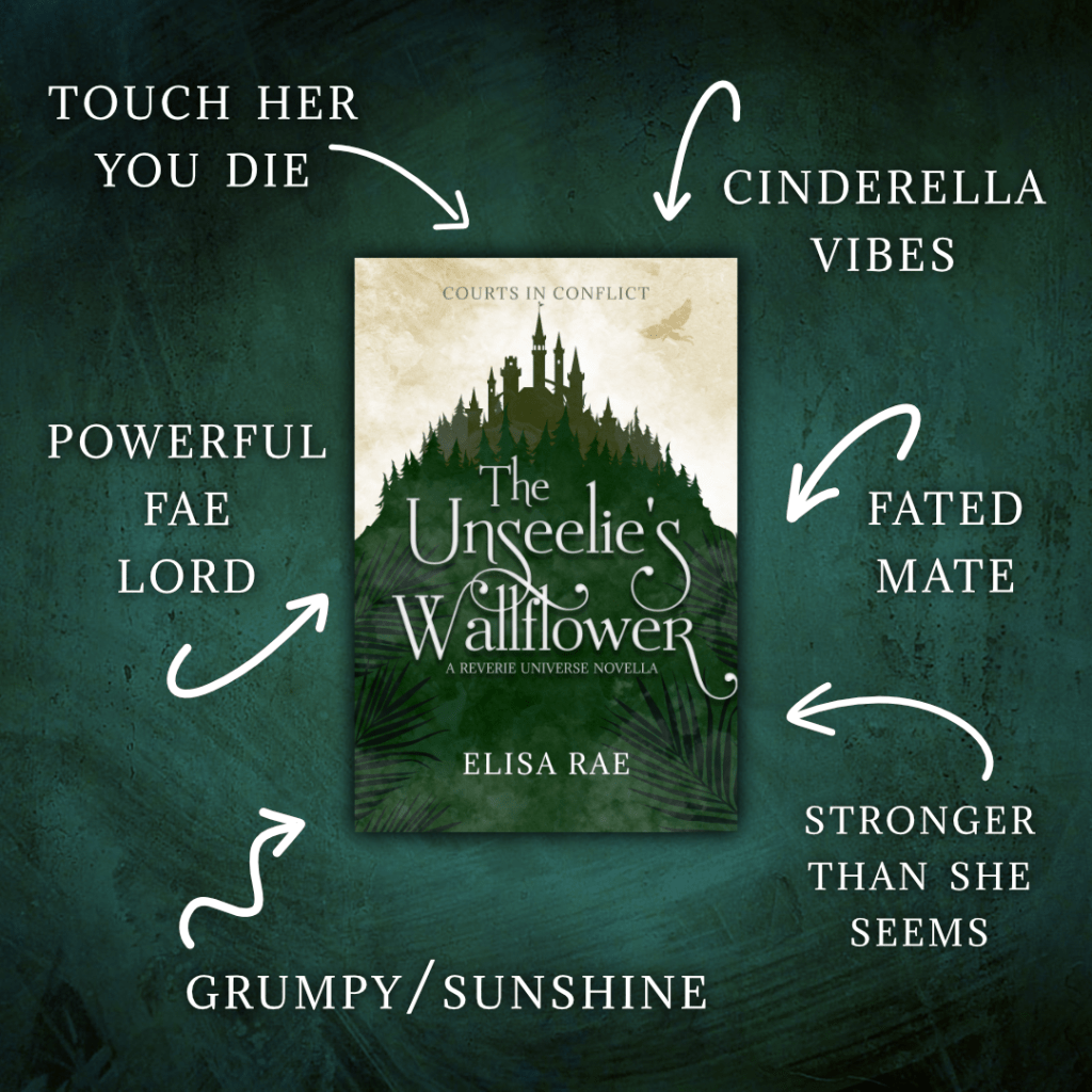 The Unseelie’s Wallflower is a light, fantasy romance novella about a relationship between an Unseelie and a human woman. It features faes, fated mates, and a romance between a noble and a servant, all played out against a backdrop of the peril, politics, and maneuverings of the Unseelie Court.